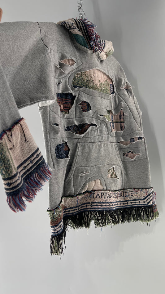 CUSTOM NY Tappanzee Rugged Distressed Blanket Hoodie with Coloration Gradient (S/M)