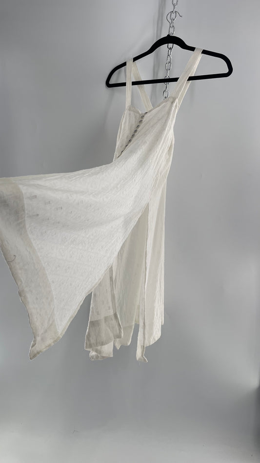 Anthropologie White Sweeping and Vented Button Front Tank (Large)