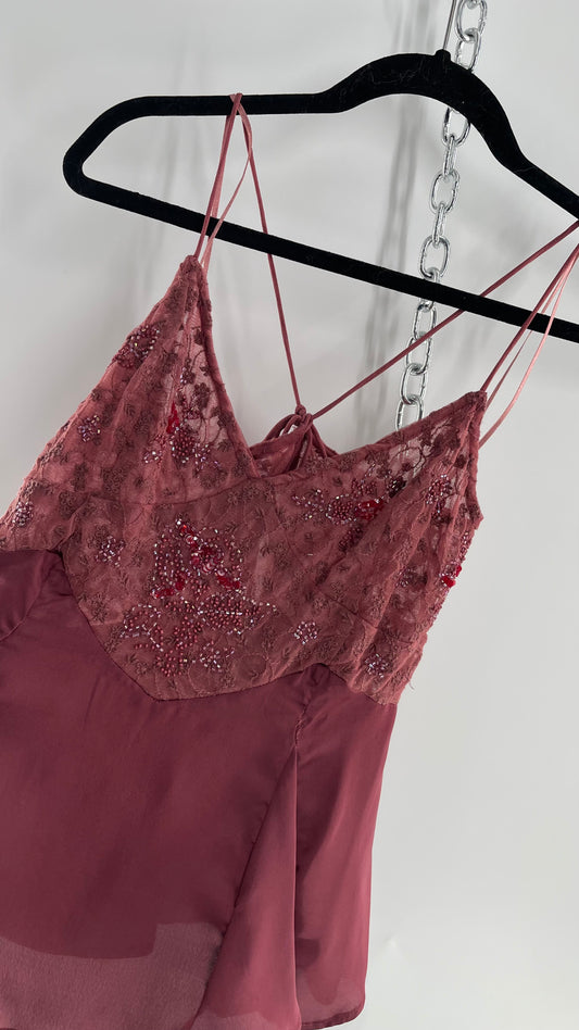 Free People Purple Beaded Bust, Lacy, Silky Fairy Tank with Extra Bead Pouch(Small)