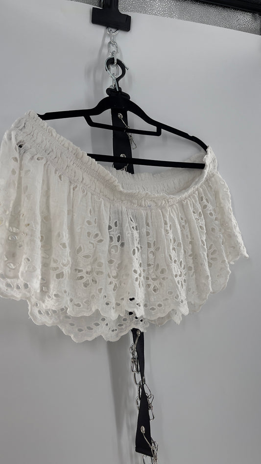 Free People Eyelet Cotton White Off the Shoulder Ruffle Bandeau (Medium)