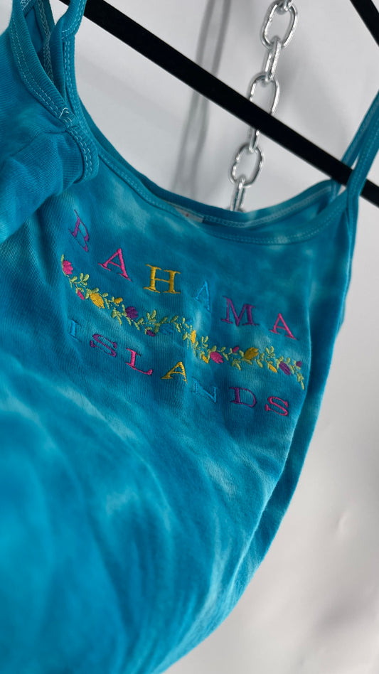 Vintage Bahama Mama Tie Dye Embroidered Tropical Tourist Tank (Medium)