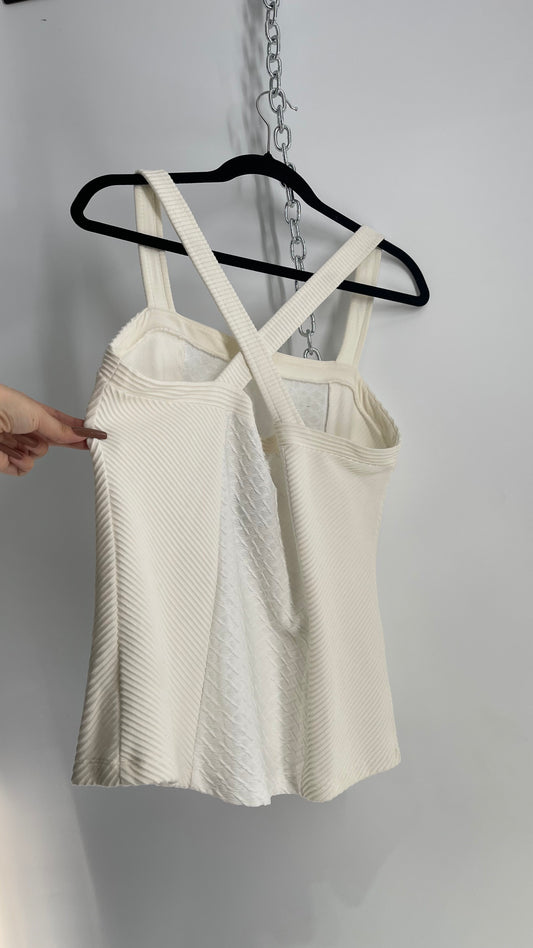 Anthropologie 1 by 0’2nd White Denim Sleeveless Cross Over Back Top with Tags Attached (2)