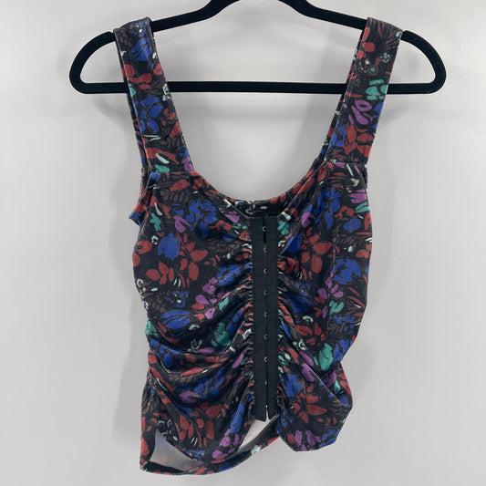 Free People Black Ribbed Lace Up Tank (XS/S)