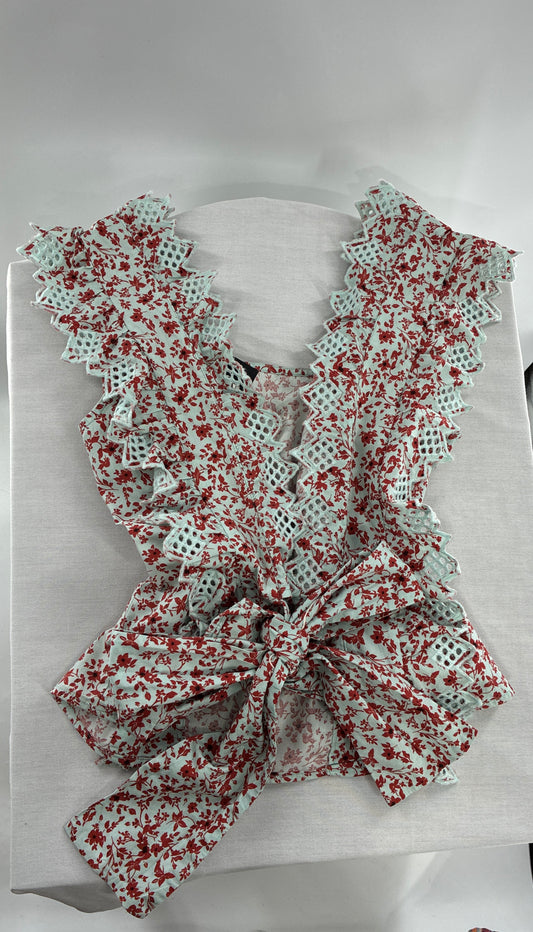 Lola P Tie Front Top with Ruffle Sleeve + Hem (Large)