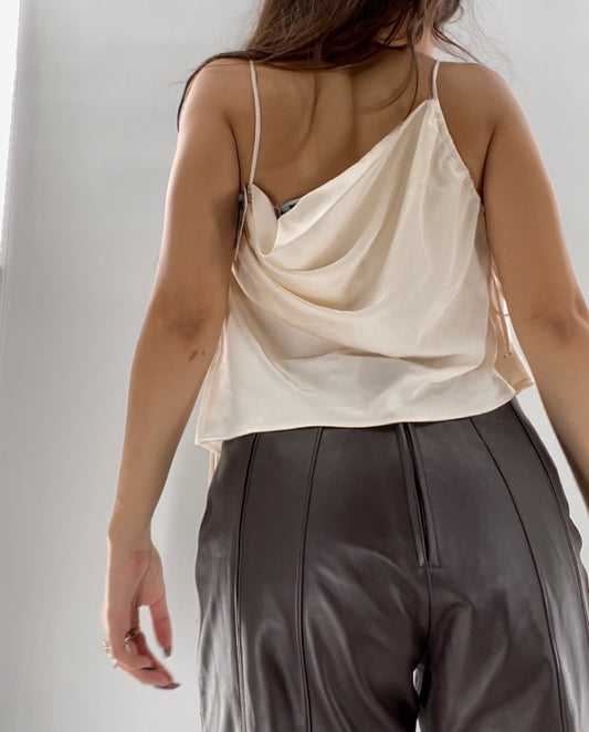 Cotton Candy LA Ivory Satin Drawstring Tank (Large)