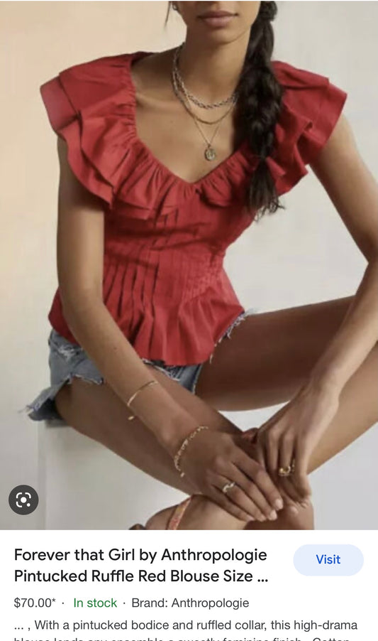 Anthropologie Forever that Girl Red Ruffle Pintuck Tank(XS)