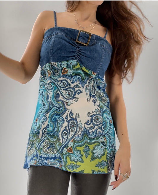 Blue Tassel Anthropologie Trina Baby Blue Burnt Orange Open Back Top (M)