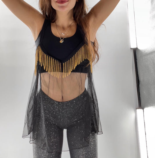 Urban Outfitters Black Ruffle Bodice + Strap Tank (XS)