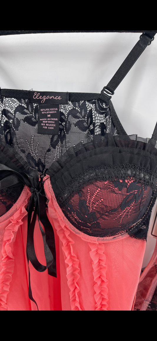 Deadstock Vintage Black + Pink Vented Bustier + Thong Set (Medium)