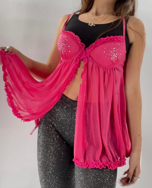 Vintage Hot Pink Mesh Babydoll (Medium)