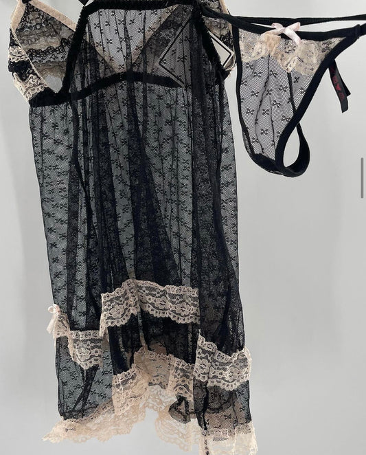Deadstock Vintage Black Fuchsia Cami + Thong Set (Medium)