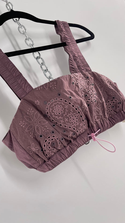 Free People Movement Dusty Purple Crop with Perforated Paisley Design (XS)