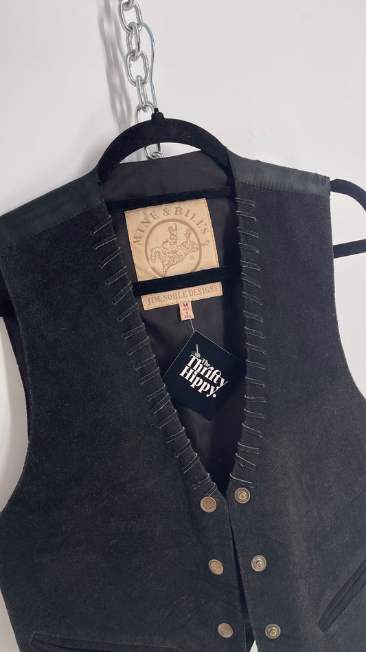 Vintage Western Mine & Bill’s Black Suede Leather Vest with Leather Stitching (Medium)