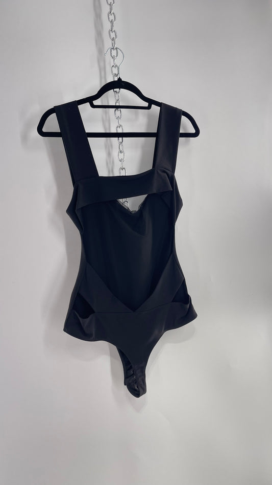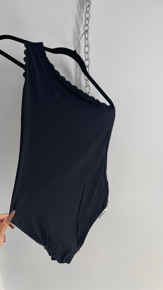 Black Lycra Bodysuit with Scalloped Neckline (Small)