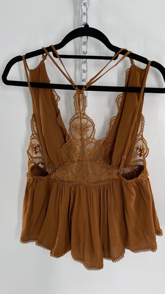 Free People Copper/Brown Voluminous Tank with Lace Detailing (XS)