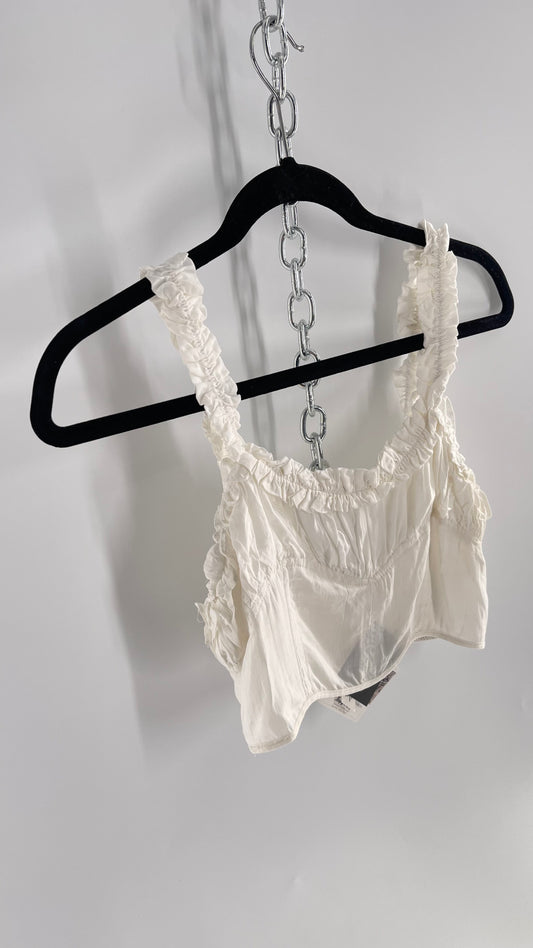 Intimately Free People White Ruched Bust Ruffle Trim Top (XS)