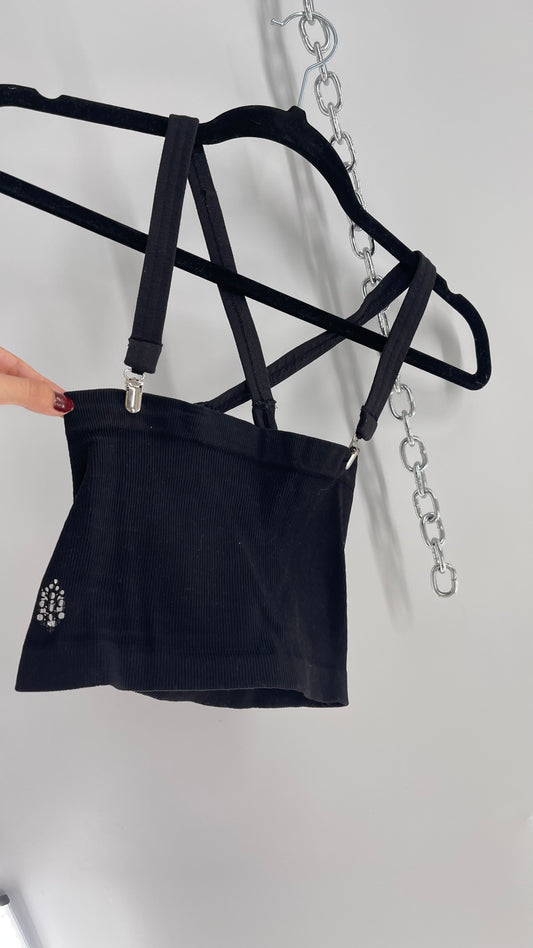 Free People Black Ribbed Tank with Metal Bust Detail and Adjustable Straps (Medium)