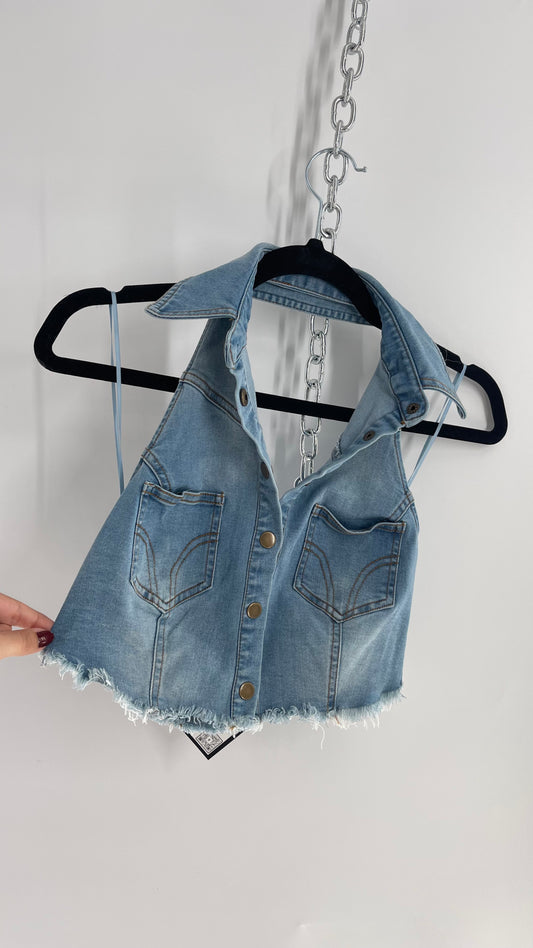 Urban Outiftters Vintage Style Reworked Light Wash Denim Vest (Small)
