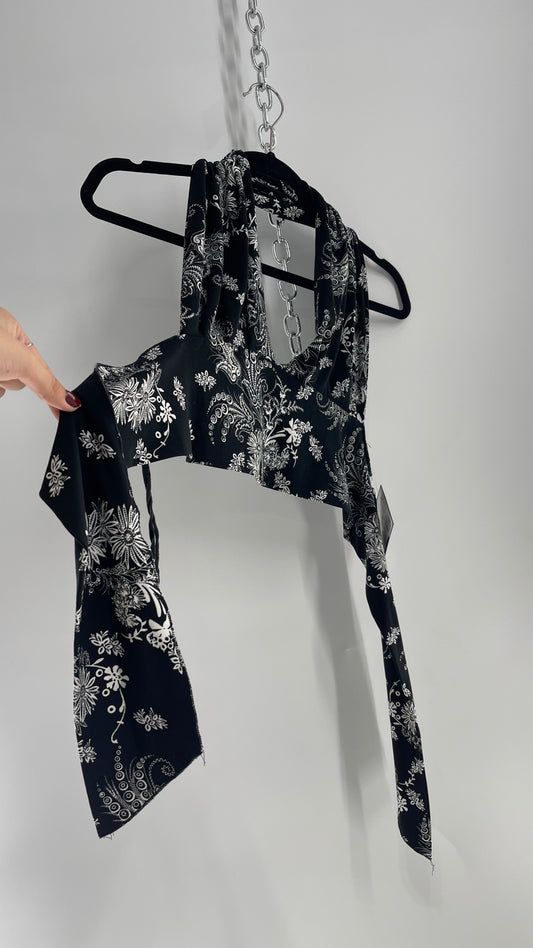 Vintage Wet Seal Black & White 1990s Paisley Halter Open Back (S/M)