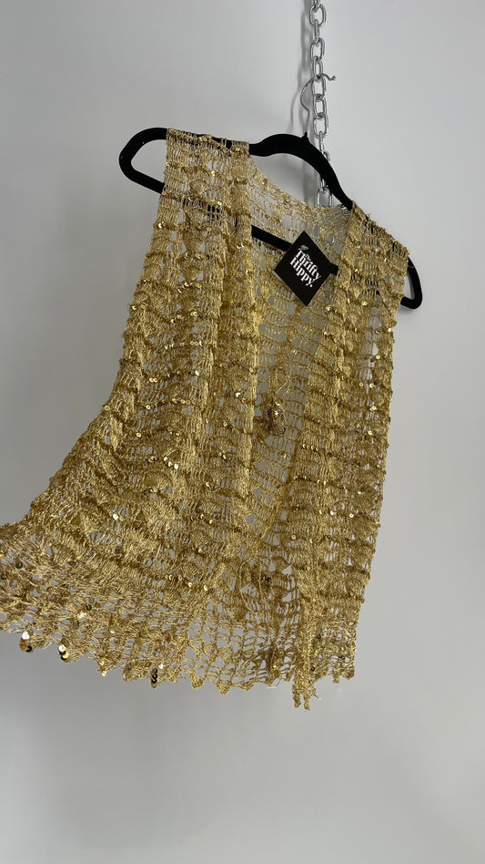 Vintage Gold Crochet Sequin Tie Bust Vest (S/M)