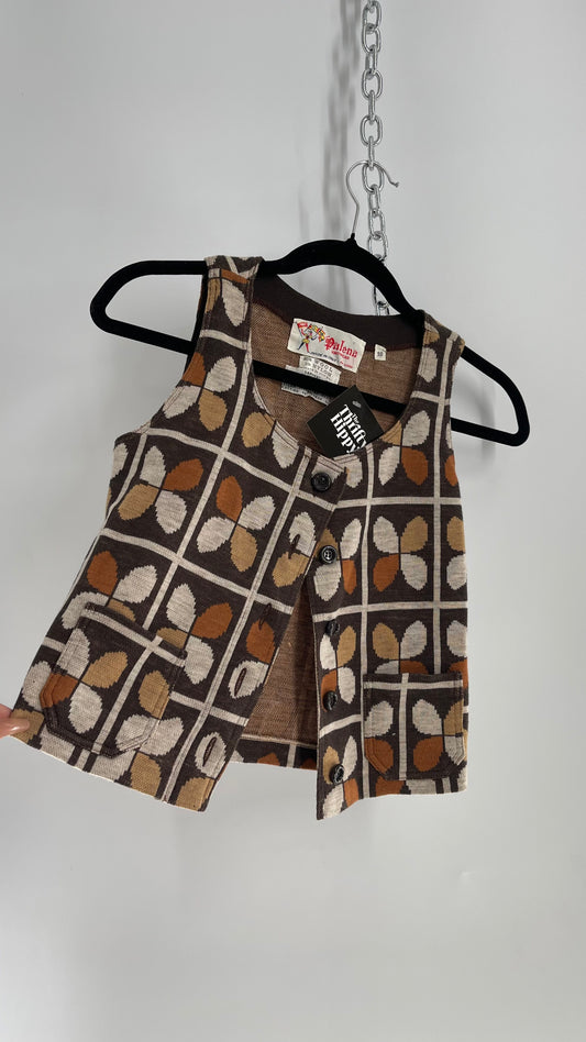 Vintage 1970s Palena Knitwear Brown, 95% Wool Cropped Button Front Pocketed Vest Top (Small)