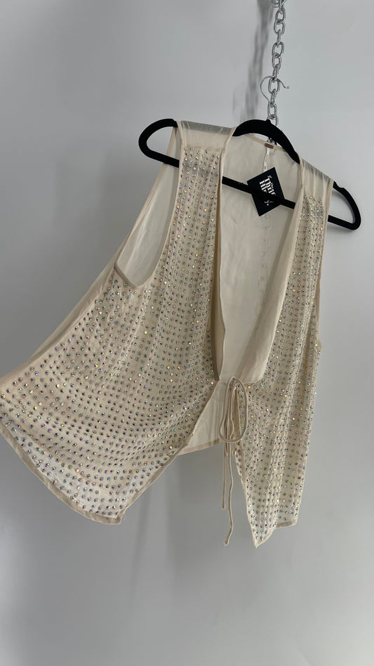 Free People Off White All Over Rhinestone Vest with Lapels (Large)