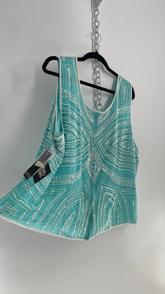Vintage 1990s Adrianna Papel Blue Beaded Tank with Tags Attached (XXXL)