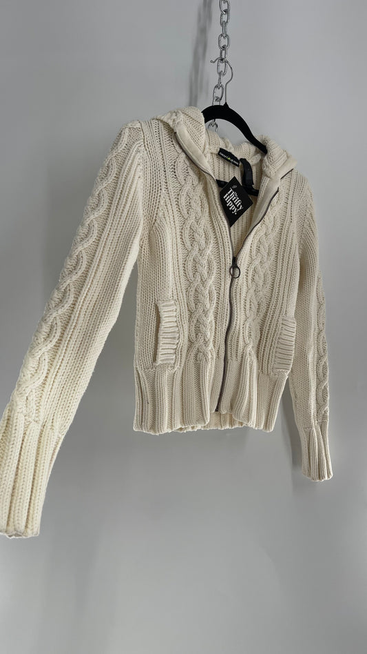 Vintage DKNY Off White Thick Cableknit Zip Front Hoodie (Medium)