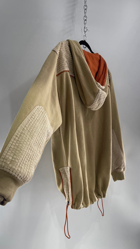 Vintage KOMAN Tan Corduroy Baggy Slouchy Zip Up Patchwork Hoodie (XL)