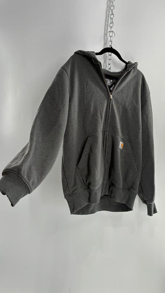 CARHARTT Rain Defender Charcoal Grey Full Zip Heavy Knit Hoodie (Large)