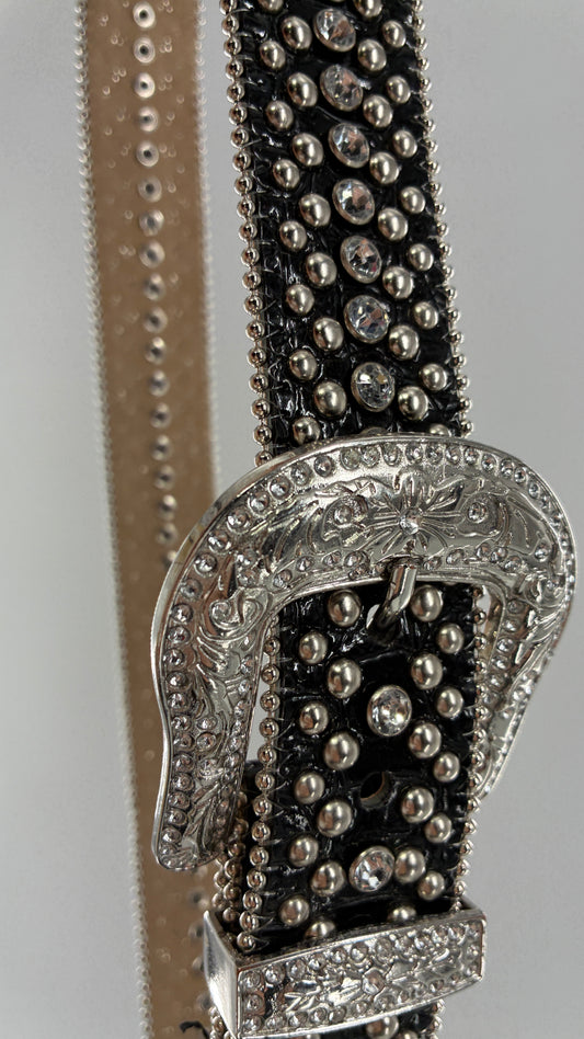 Vintage GUESS Black Rhinestone Studded Belt (Large)