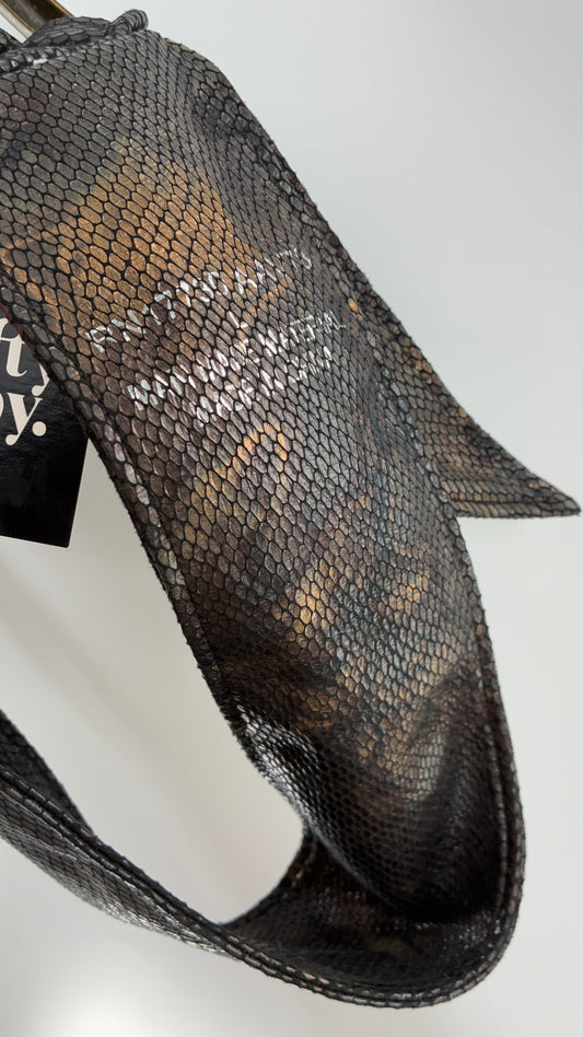 Vintage Snake Skin Patterned Wide Belt with Gold Brass Oversized Buckle (Large)