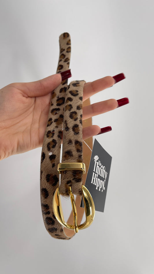 Vintage Talbots Leather and Pony Hair Cheetah Printed Skinny Belt (Small)