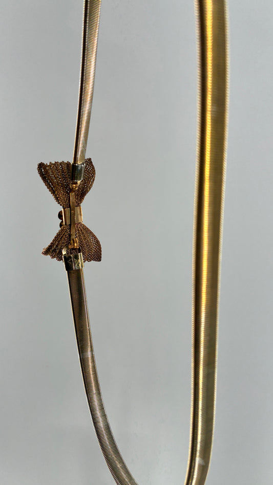 Vintage Silver and Gold Thin Stretchy Metal Belt with Mesh Bow