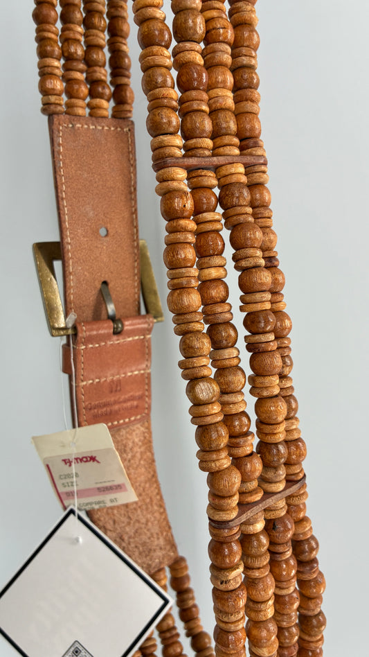 Vintage Leather, Beaded Belt with Tags Attached (Medium)