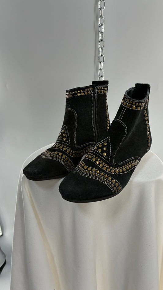 MATISSE Brass Studded Black Suede Boots (6.5)