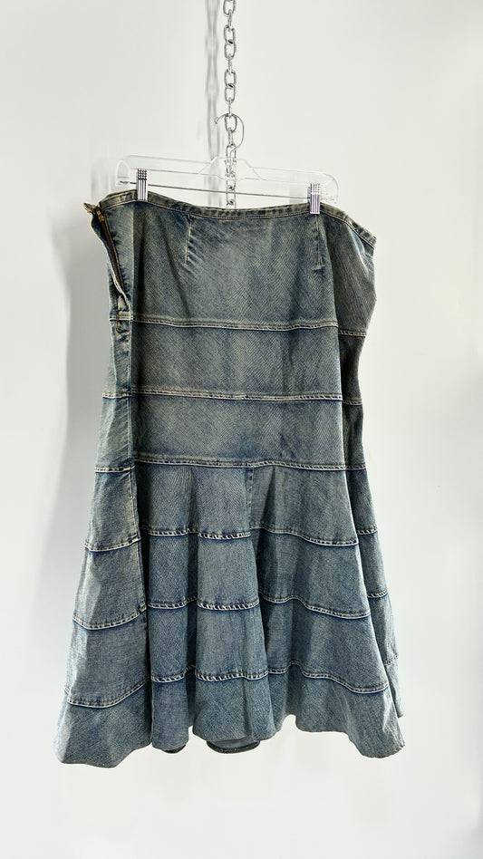 Vintage JEANOLOGY Tiered Denim Skirt with Fading and Stone Wash (16W)