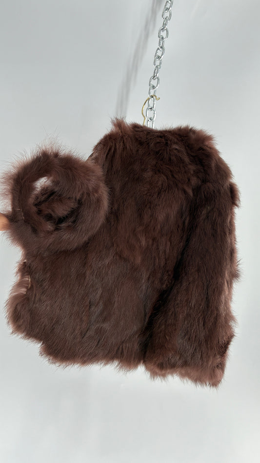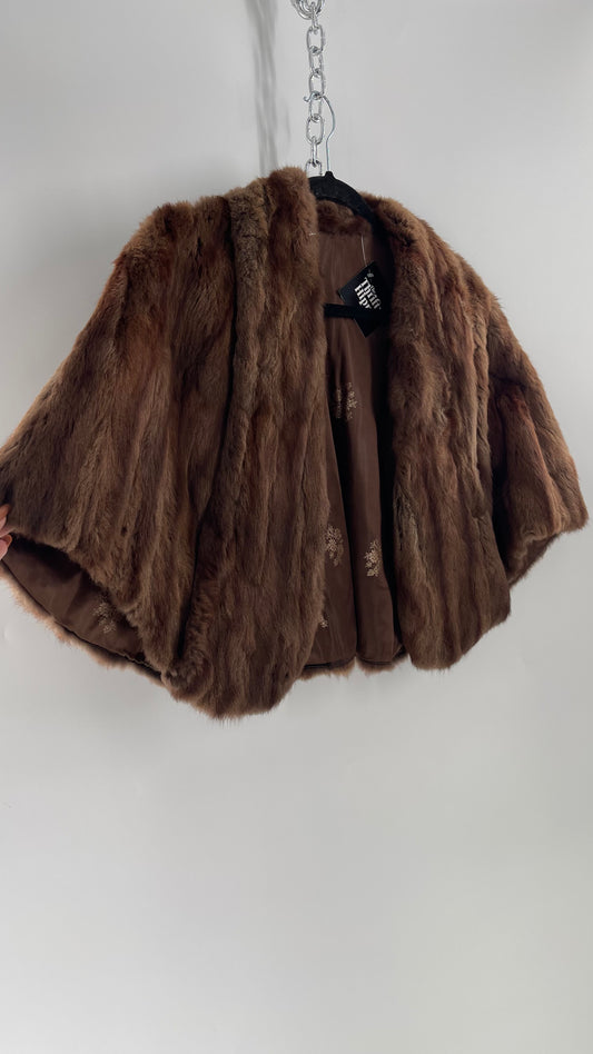 Vintage CAROLINE 100% Rabbit Fur Brown Shrug Cape with Oversized Round Buckle (One Size)