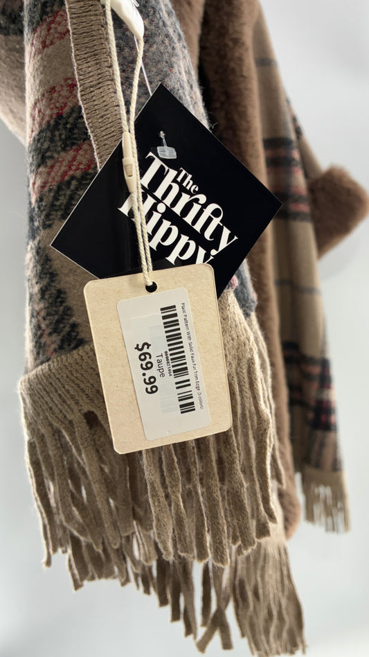 FADIVO NEW YORK Plaid Taupe Cape with Fur Trim and Tags Attached (OS)