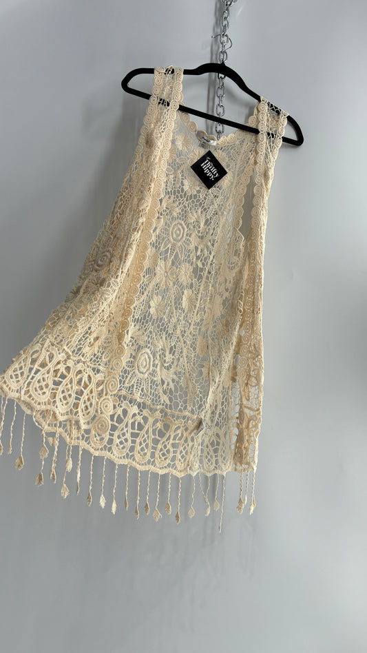 Intimately Free People Linen/Cotton White Cape with Embroidery Design (Medium)