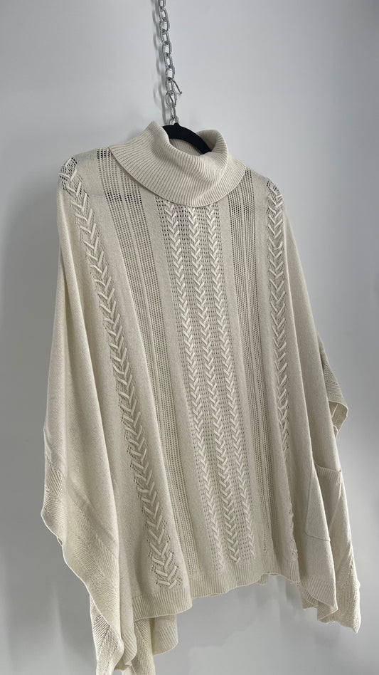White House Black Market Glittery Gold and Tinsel Turtle Neck Sweater Cape (S/M)