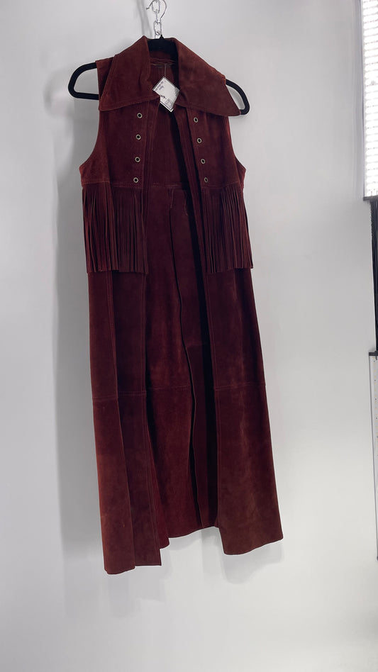 Vintage 1970s Suede Leather Full Length Reddish Brown Vest (S/M)