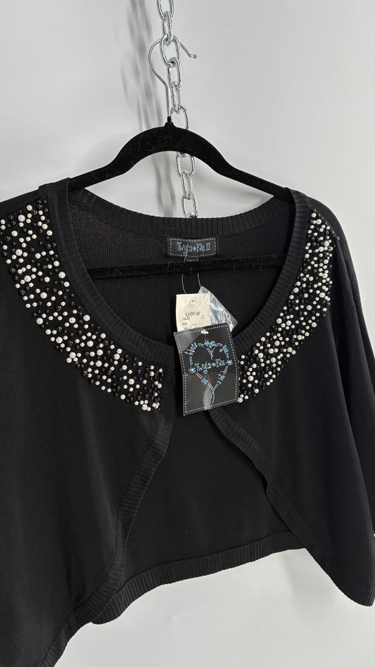 Deadstock Vintage Black Shrug with Beaded, Pearl Details and Tags Attached (3X)