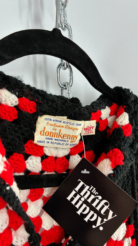 Vintage 1970s DONNKENNY Handmade Knit Poncho with Collar and Fringe (Medium)
