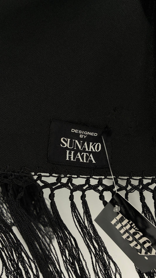 Vintage Designer SUNAKO HATA Cape with Embroidered and Fringe Details