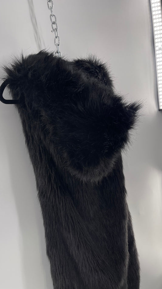 Full Length Black Fuzzy Sleeveless Vest with Oversized Hood (Medium)