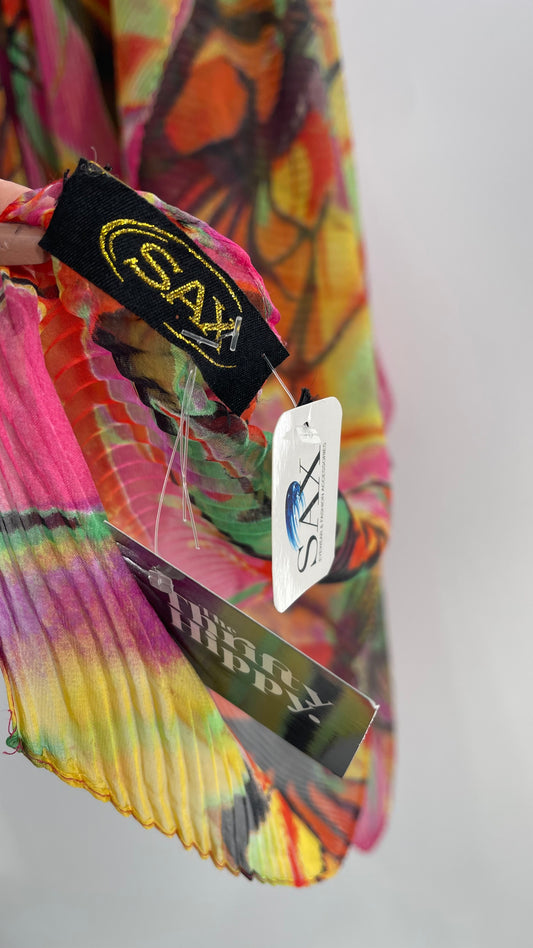 Deadstock Vintage SAX Neon Pink Yellow Fluted Cover Up