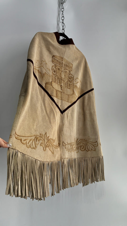Vintage Animal Hide Engraved Poncho OverCoat (C)(One Size)