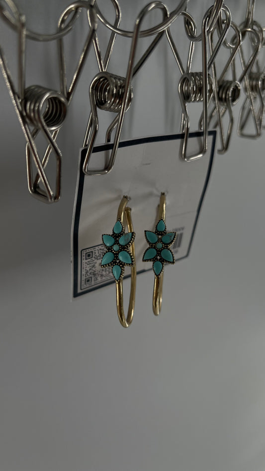 Free People Gold Metal Hoop Earring with Turquoise Stones