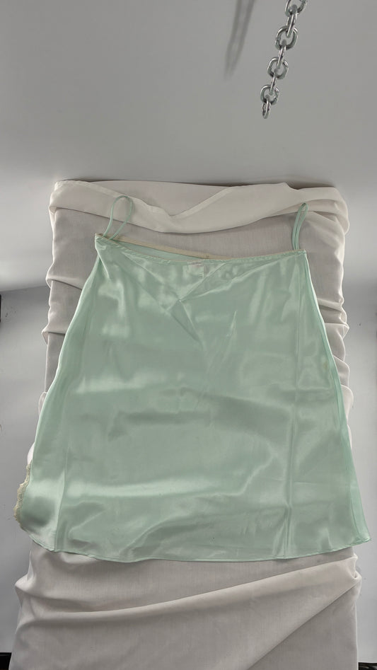 Vintage CRUZ Mint Slip Skirt with Lace Appliqués and Rosette Waistline (Large)